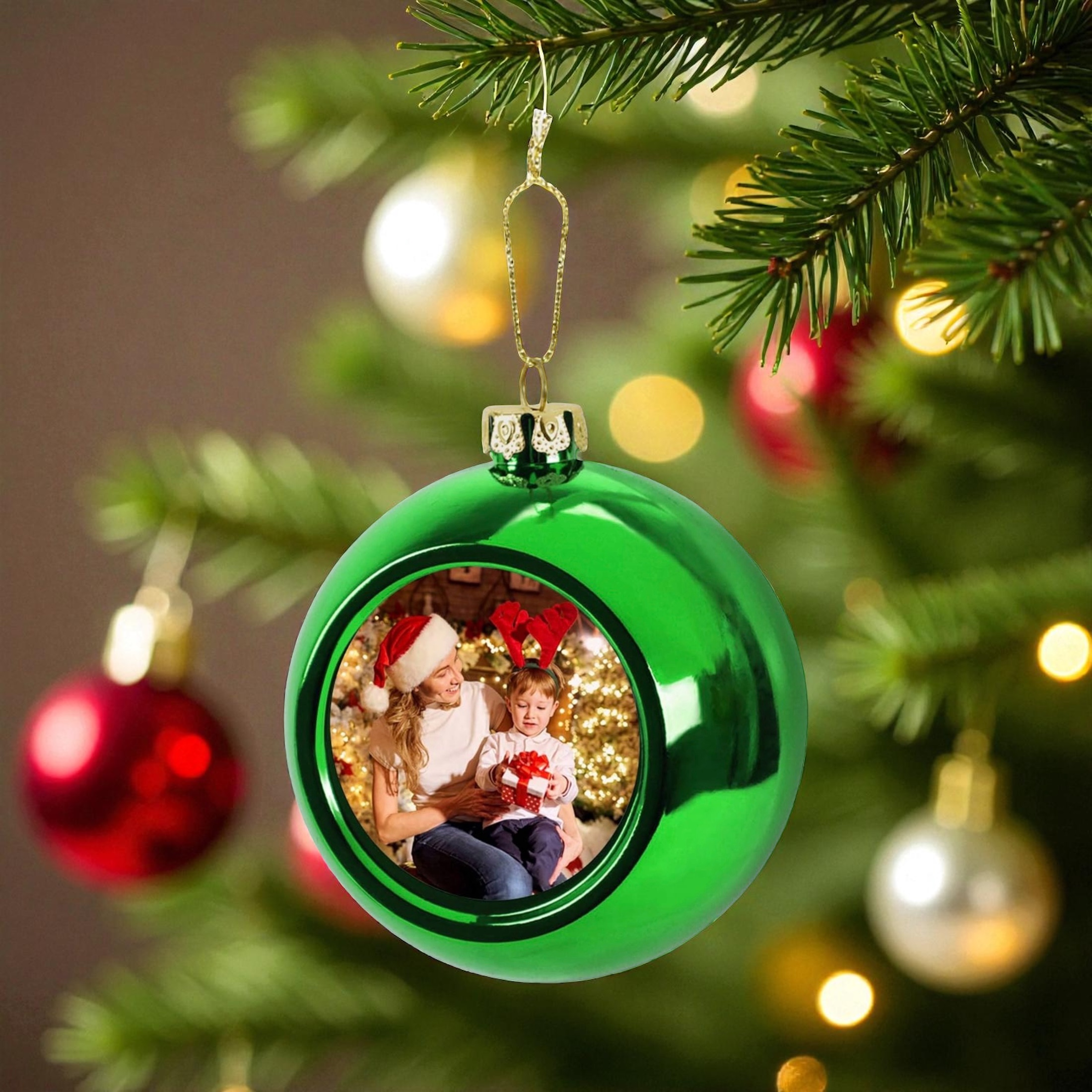 Make your Christmas designs pop with this mirror personalised Christmas bauble. The bold, glossy finish provides a striking backdrop for personalised inserts that can be printed with photos, names, or seasonal artwork.
