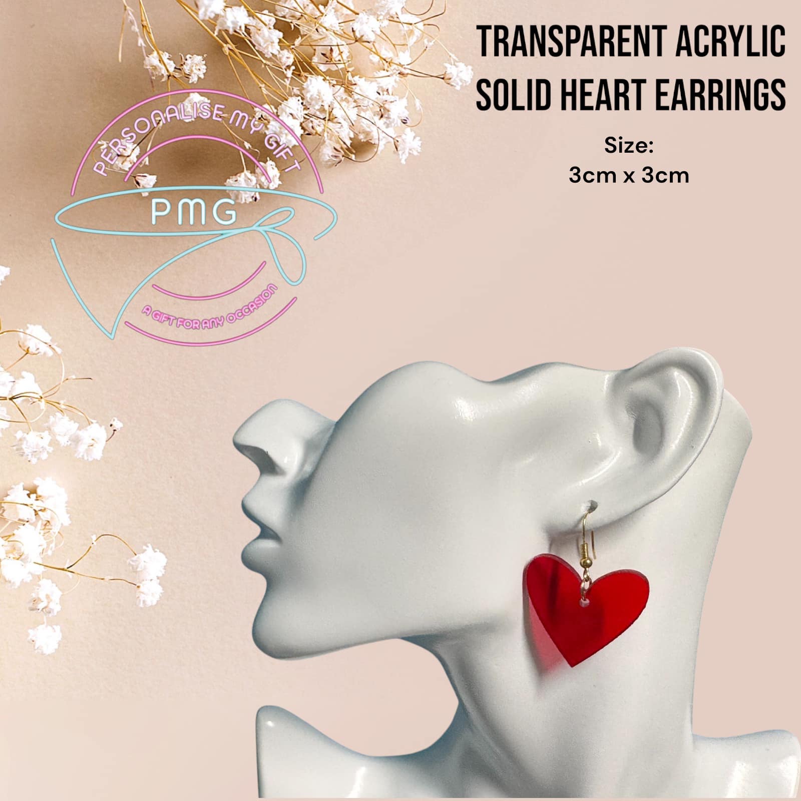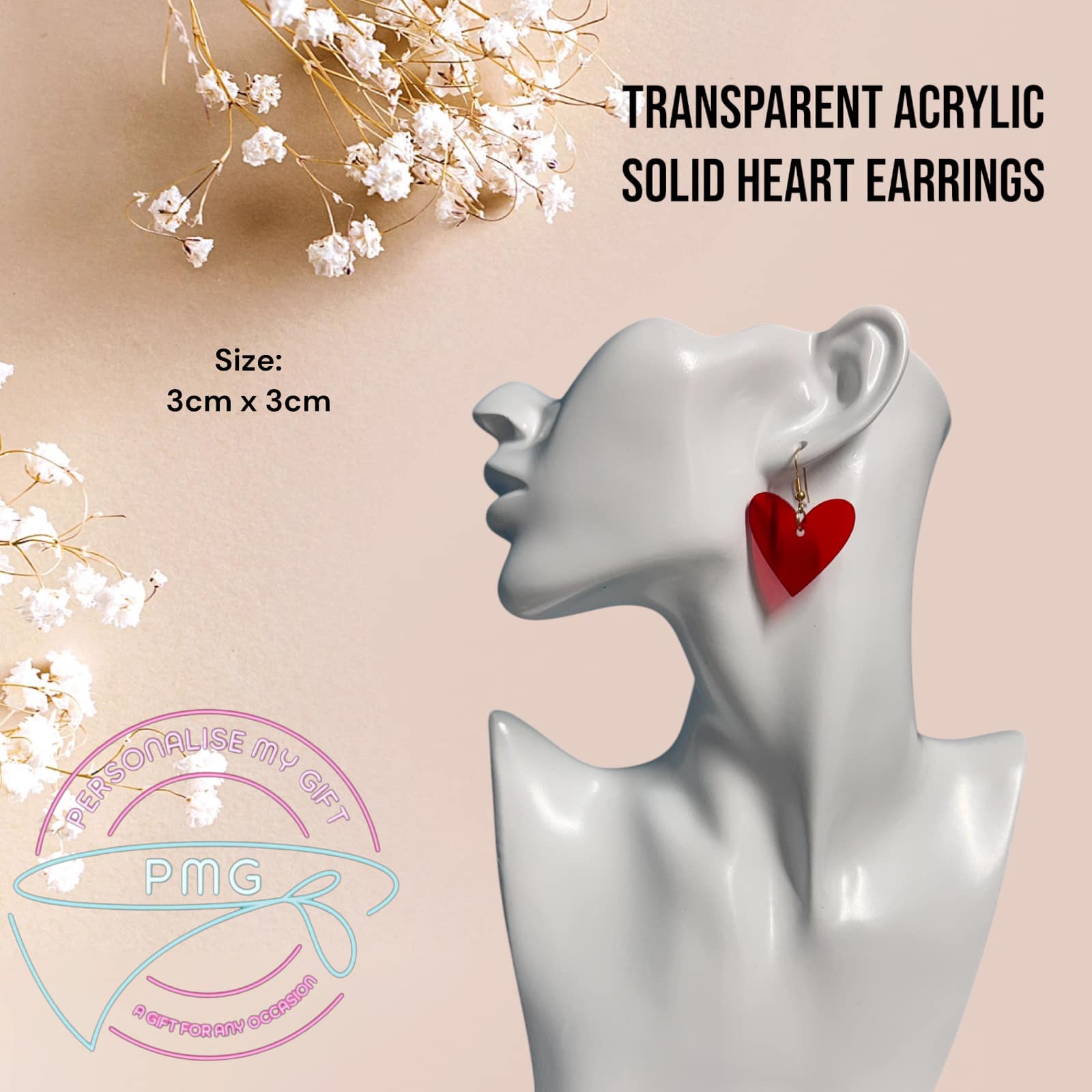 Celebrate love in bold, vibrant colour with our Transparent Red Heart Acrylic Earrings.